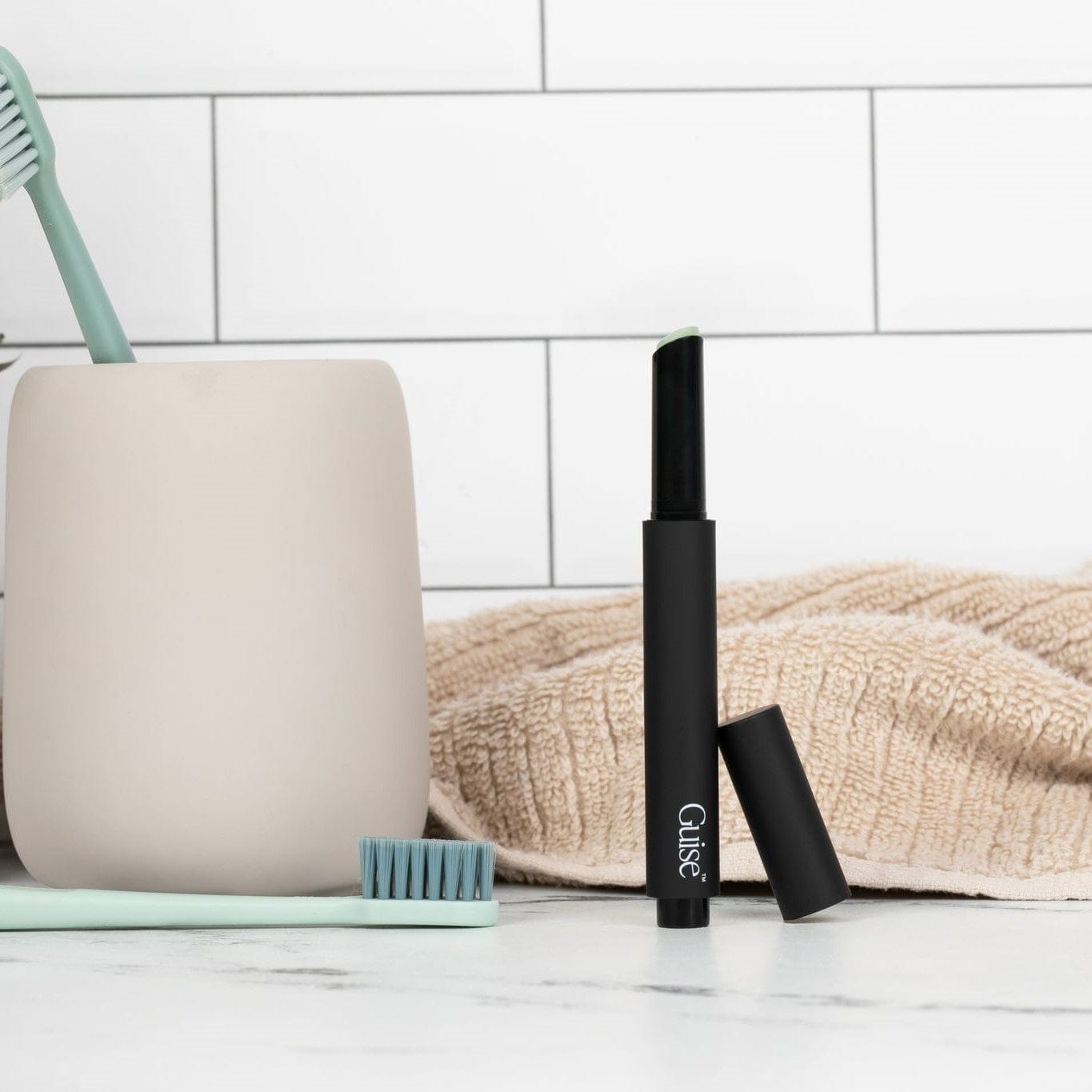 The Guise Green Stick is an on-the-go color corrector crafted to decrease the visibility of facial redness.